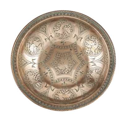 TWO MAMLUK STYLE TINNED COPPER DISHES
