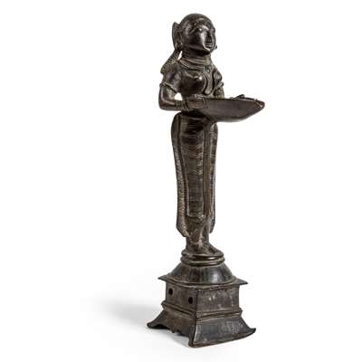 BRONZE OIL LAMP IN THE FORM OF LAKSHMI THE HINDU GODDESS