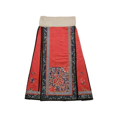 清末民初 紅地刺繡蝴蝶牡丹紋馬面裙