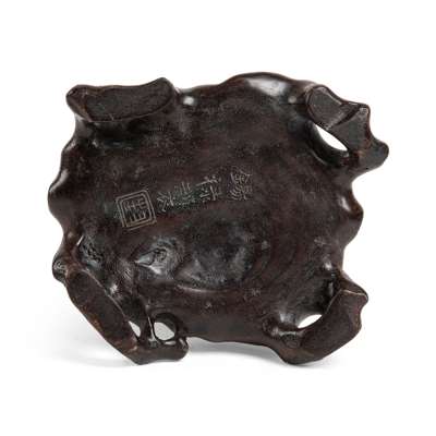 carved in round from a whole piece of wood supported on four feet of wooden trunk form, two birds holding a piece of plant in their mouth, their feathered bodies and long claws finely defined