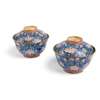 PAIR OF PAINTED ENAMEL TEABOWLS WITH COVERS