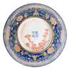 each bowl delicately painted with stylised lotus flowers borne on foliated tendrils, against a royal blue ground, the interior covered in turquoise colour, the base with a four-character Qianlong mark in blue, with bamboo and lingzhi sprigs in iron-red, the lid similarly decorated