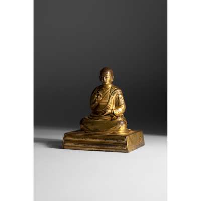 GILT BRONZE SEATED FIGURE OF A LAMA