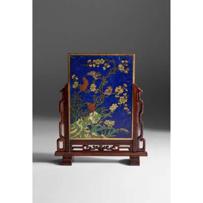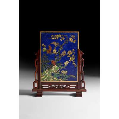 Note: a comparable cloisonné enamel plaque of similar size and dated to the Qing Dynasty, 17th-18th century, was offered in Bonhams New York, on 20 Sept 2021, lot 181