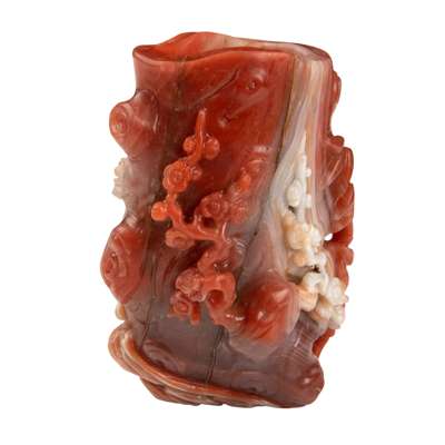 RED AND WHITE CRNELIAN AGAT 'TREE TRUNK' VASE