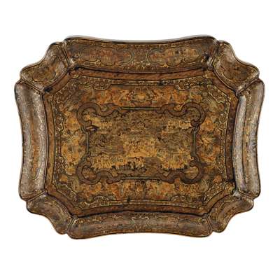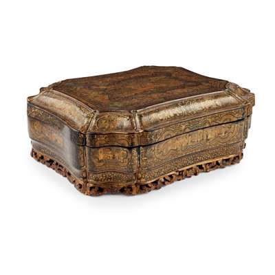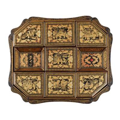 EXPORT GILT AND BLACK LACQUERED GAMES BOX