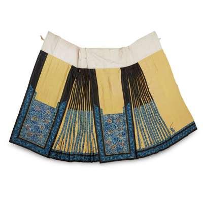 清末民初 黃地刺繡蝴蝶牡丹紋馬面裙(共兩件)