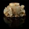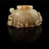 清 青玉帶皮雕魚籠蝦蟹筆洗