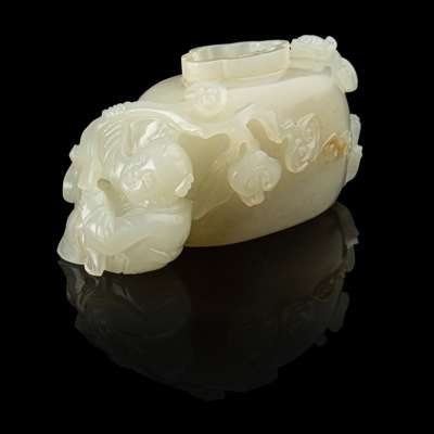 WHITE JADE 'BOY AND RUYI' WATER POT