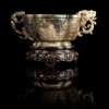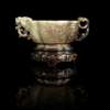WHITE AND RUSSET JADE 'TAOTIE' CUP WITH DRAGON AND CHILONG HANDLES