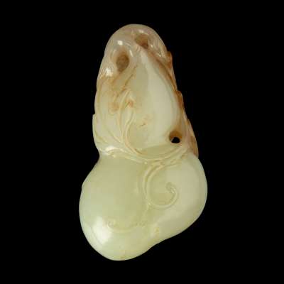 WHITE JADE WITH RUSSET SKIN CARVING 'DOUBLE-GOURD WITH BAT' PENDANT