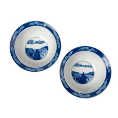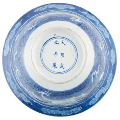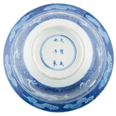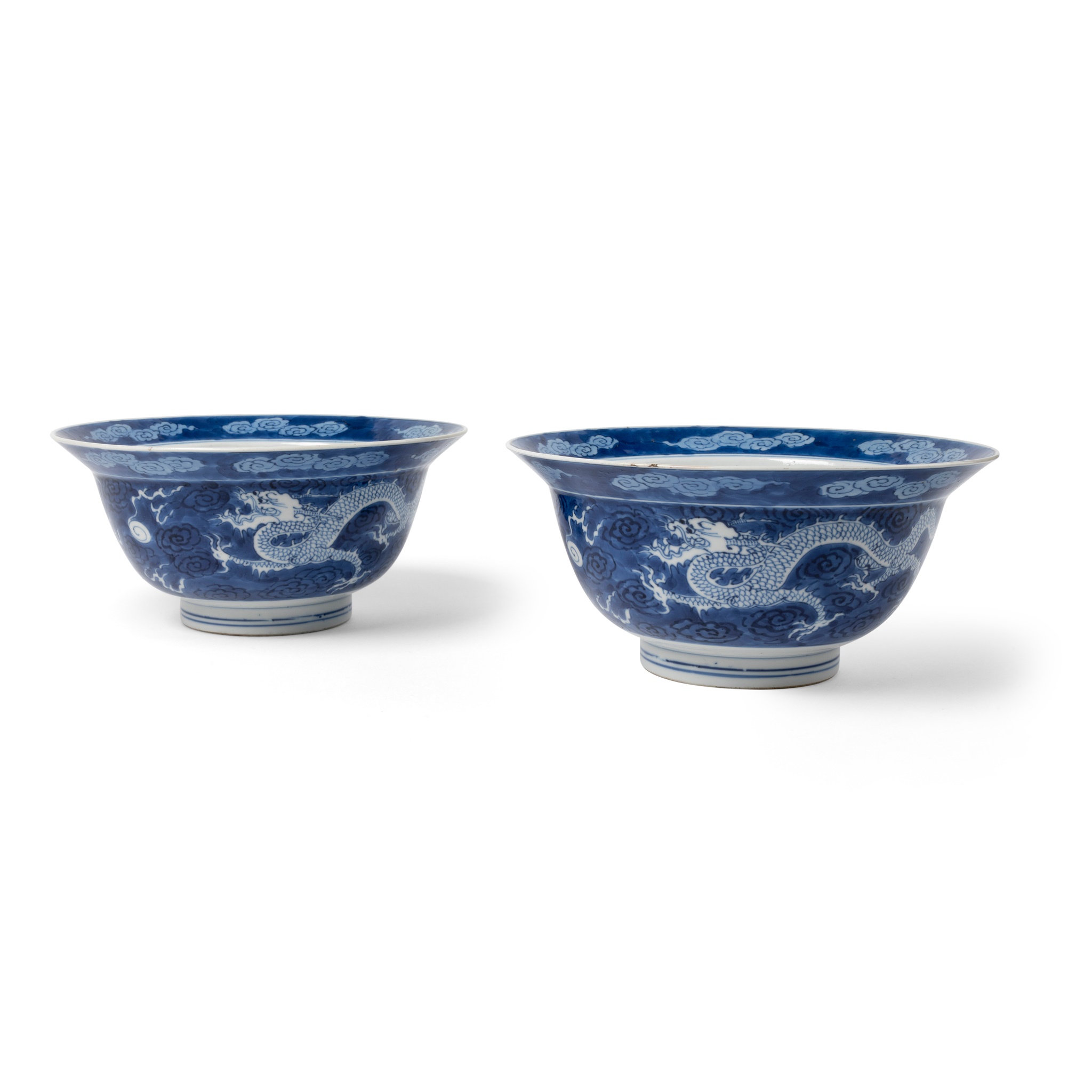 PAIR OF BLUE AND WHITE 'DRAGON' BOWLS
