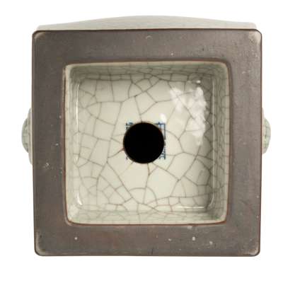 GE-TYPE CRACKLE-GLAZED SQUARE VASE