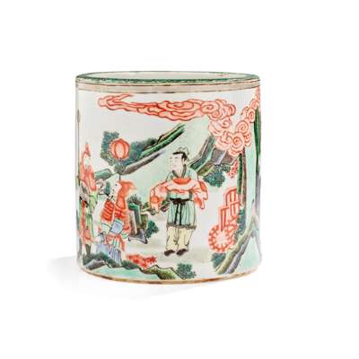 painted around the exterior with a narrative scene of a fisherman called away from his work to meet with King Wen of Zhou accompanied by a retinue of attendants and armoured guards