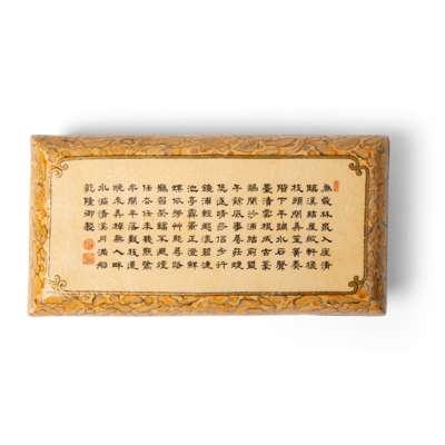 清 乾隆款 粉彩仿石釉地開光御題詩長方蓋盒