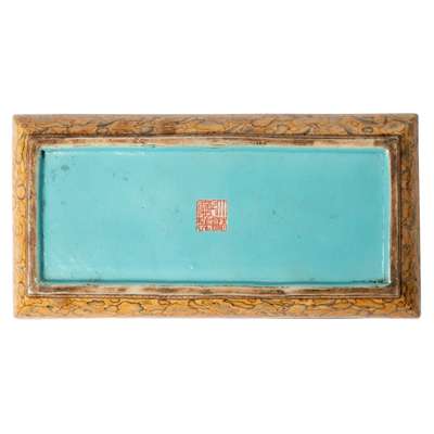 FAMILLE ROSE FAUX-MARBLE RECTANGULAR INK TRAY WITH COVER