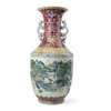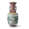 清 乾隆款 粉彩胭脂紫地通景進寶圖螭龍耳大賞瓶