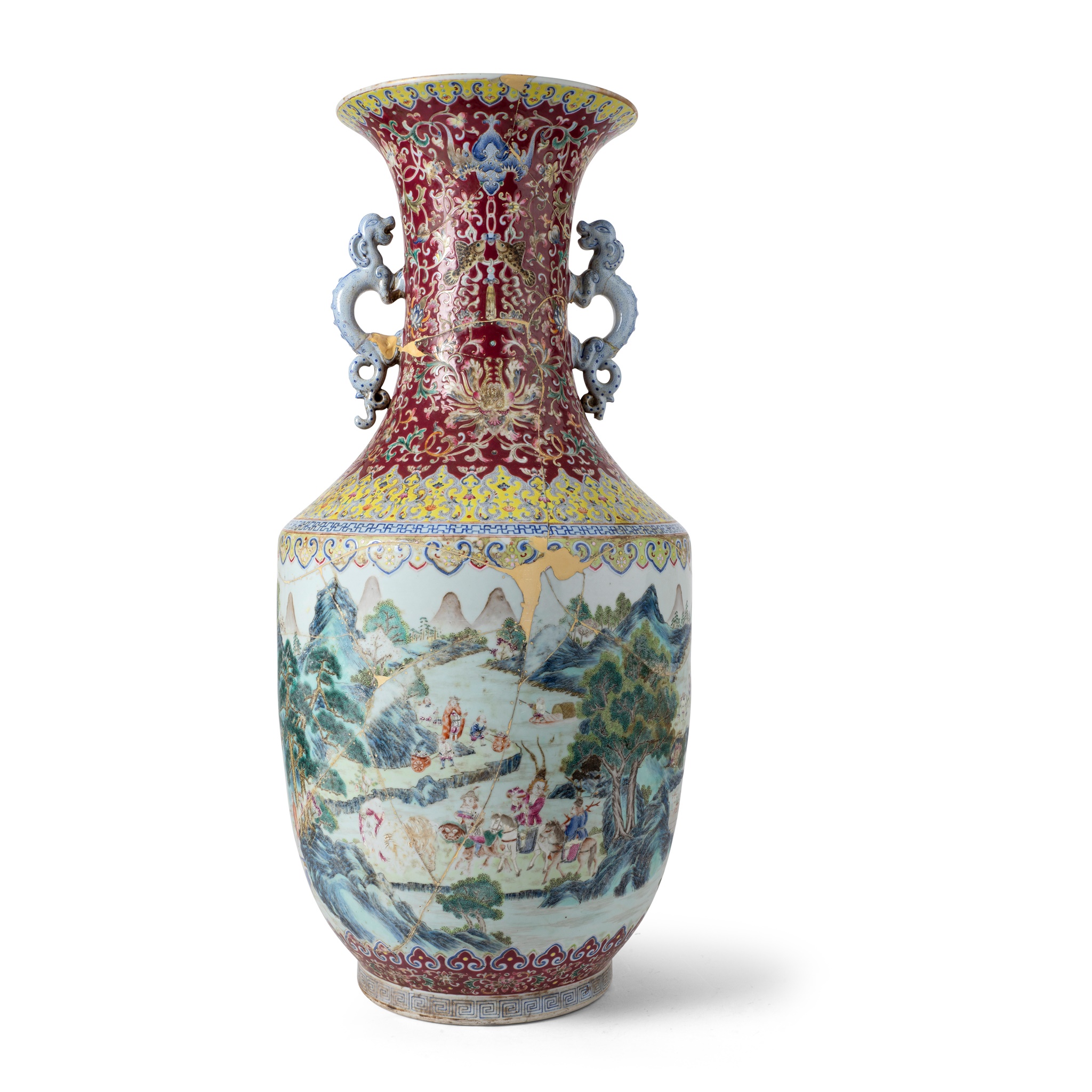 LARGE FAMILLE ROSE 'FOREIGN TRIBUTE BEARERS' VASE