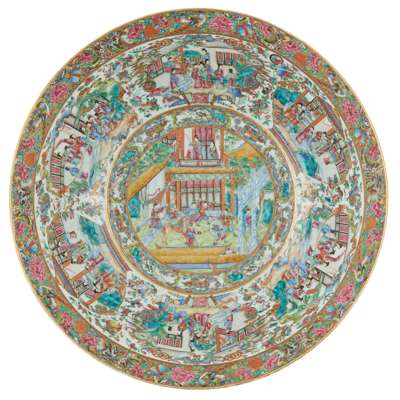 MASSIVE CANTON FAMILLE ROSE PUNCH BOWL