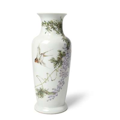 二十世紀 畢伯濤款 ‘南昌程興盛製’底款 淺絳彩‘東風舞燕斜’瓶