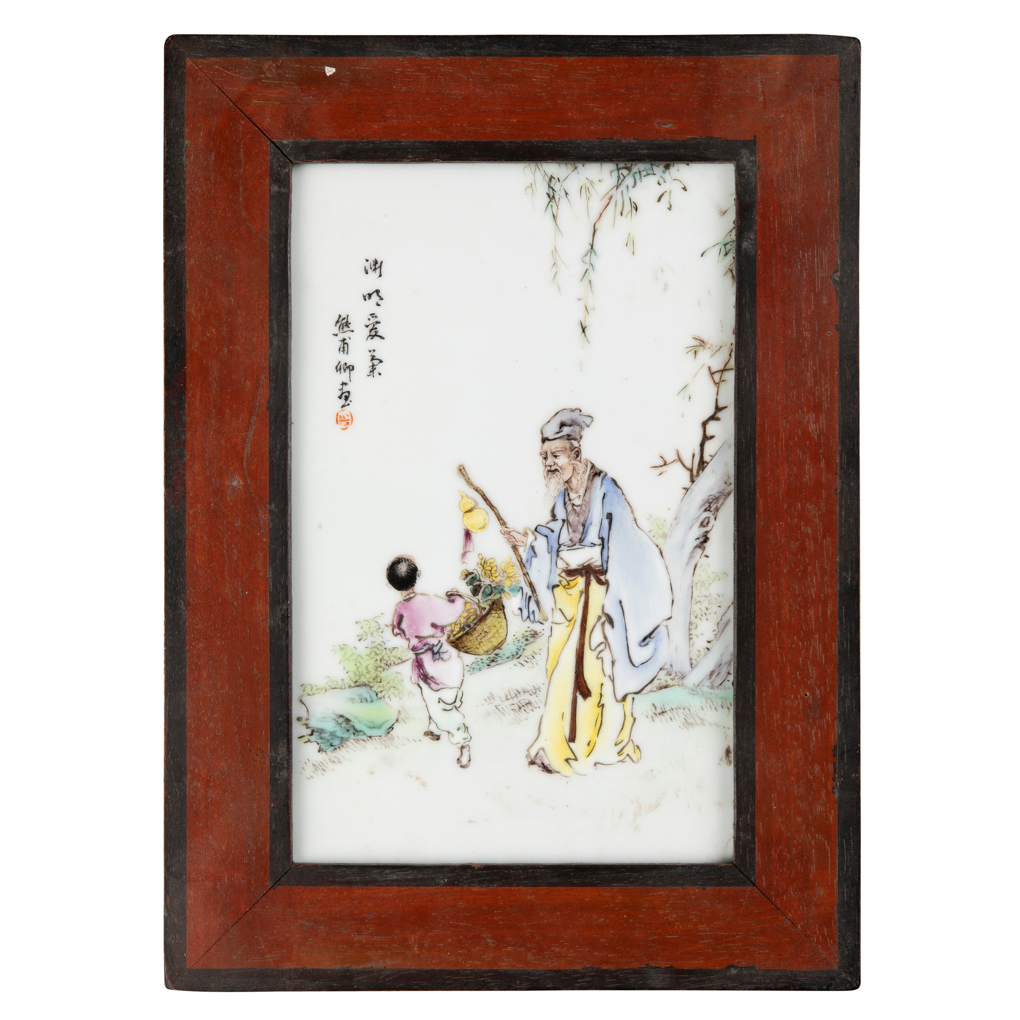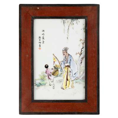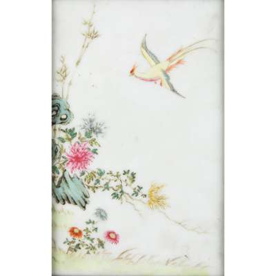 二十世紀 粉彩花鳥紋 及 熊甫卿款 ‘淵明愛菊’瓷板(兩件)