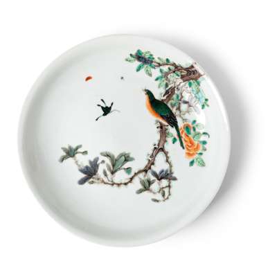 FAMILLE VERTE 'BIRD AND BUTTERFLY' PLATE
