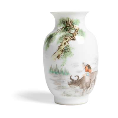 FAMILLE ROSE 'BUFFALO AND BOY' VASE