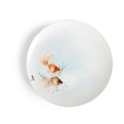 二十世紀 章鑒款 '景德鎮製'底款 粉彩金魚圖盤