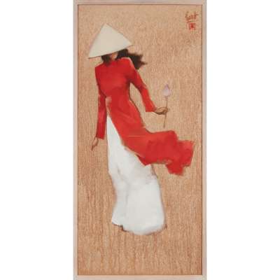 Provenance: Private Scottish collection, Glasgow, acquired from the Glasgow Art Fair, George Square, in 2009 (by repute). With a photocopied written receipt indicating it was sold by the Red River Gallery, signed 'Dang VH Thach'; the gallery's business card shows an address '7 Hang Khay Street, Hoan Kiem District, Hanoi, Vietnam'