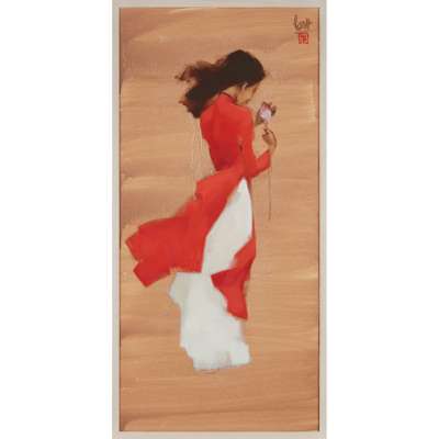 Note: Born 1954 in Hanoi, the contemporary Vietnamese artist Nguyen Thanh Binh studied and graduated at Hanoi College of Fine Art in 1972. His training in oil painting was at the Gia Dinh Na College of Fine Art in Ho Chi Minh City during 1978-1983. Best known for his simplified depictions of figures, including ballerina dancers, nudes, musicians, and schoolgirls upon a flat backdrop of colour. Binh employs simple but well-placed lines and subtle forms in his figures to separate them from space, creating a minimalist and elegant aesthetic. Binh participated in numerous international exhibitions, including Hong Kong, UK, USA, Australia, Dubai, and Japan. He currently lives and works in Ho Chi Minh City, Vietnam.