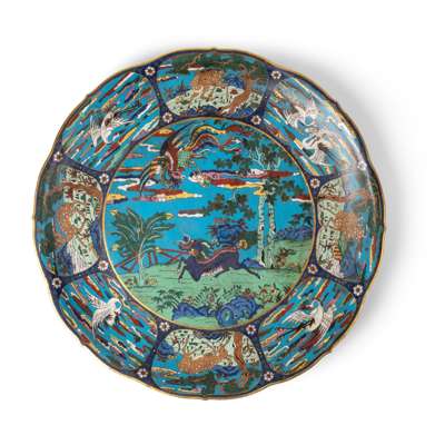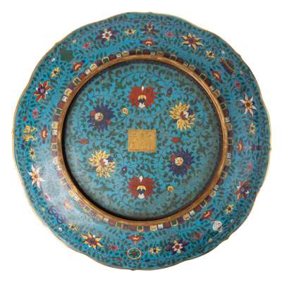 LARGE CLOISONNÉ ENAMEL FOLIATE CHARGER