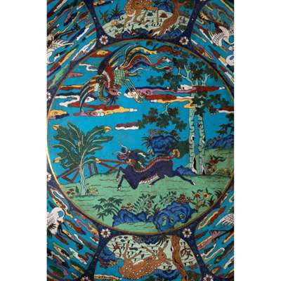 清 康熙款 銅胎掐絲琺瑯鳳凰麒麟圖大盤