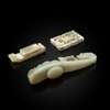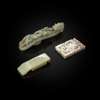 comprising: an archaistic pale celadon jade belt hook; an archaistic chicken bone jade 'dragon' plaque; and a pale celadon 'dragon' belt hook