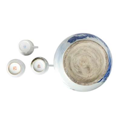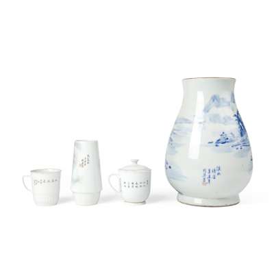 二十世紀 桂英款 青花釉裏紅山水紋尊、粉彩山水紋小瓶 及 粉彩山水紋杯兩件(共四件)