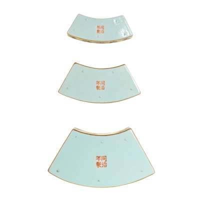 清 同治款 黃地描金粉彩百蝶紋扇形蓋盒套組 (一套三件)