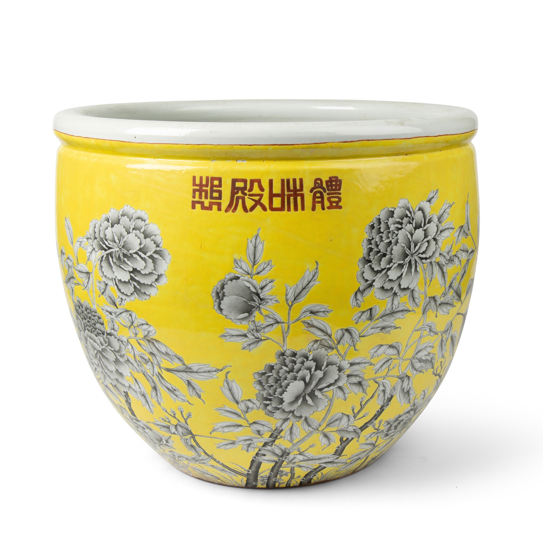 清光緒 體和殿製款 黃地墨彩牡丹紋大缸