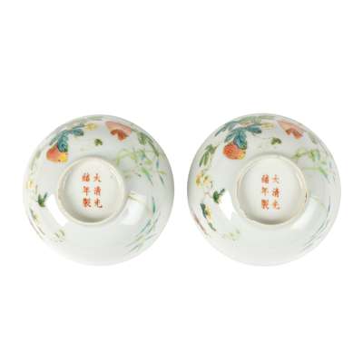 二十世紀 光緒款 粉彩石榴紋小碗一對