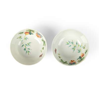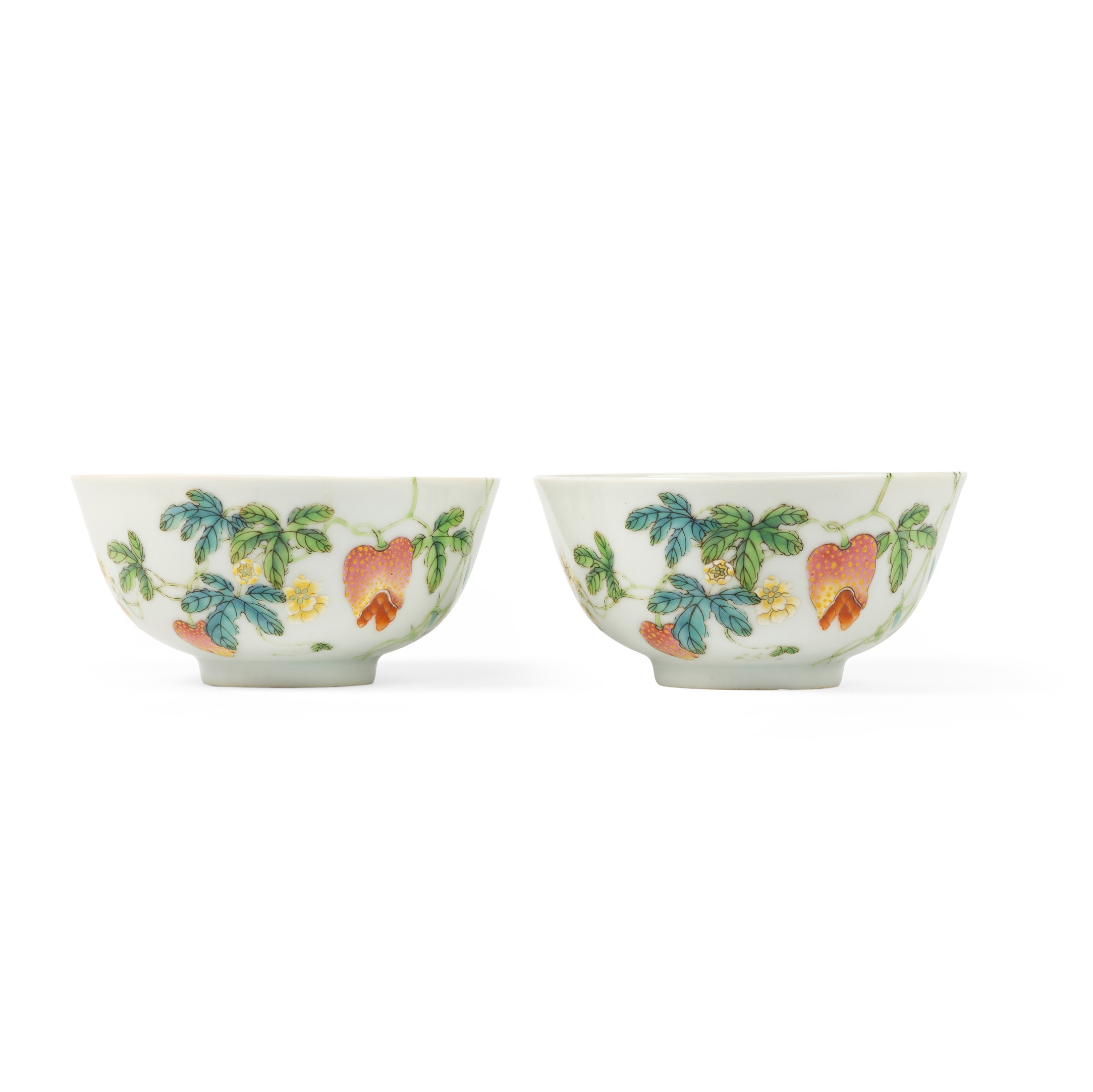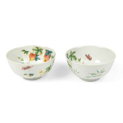 PAIR OF FAMILLE ROSE 'POMEGRANATES AND BUTTERFLIES' BOWLS