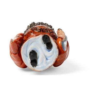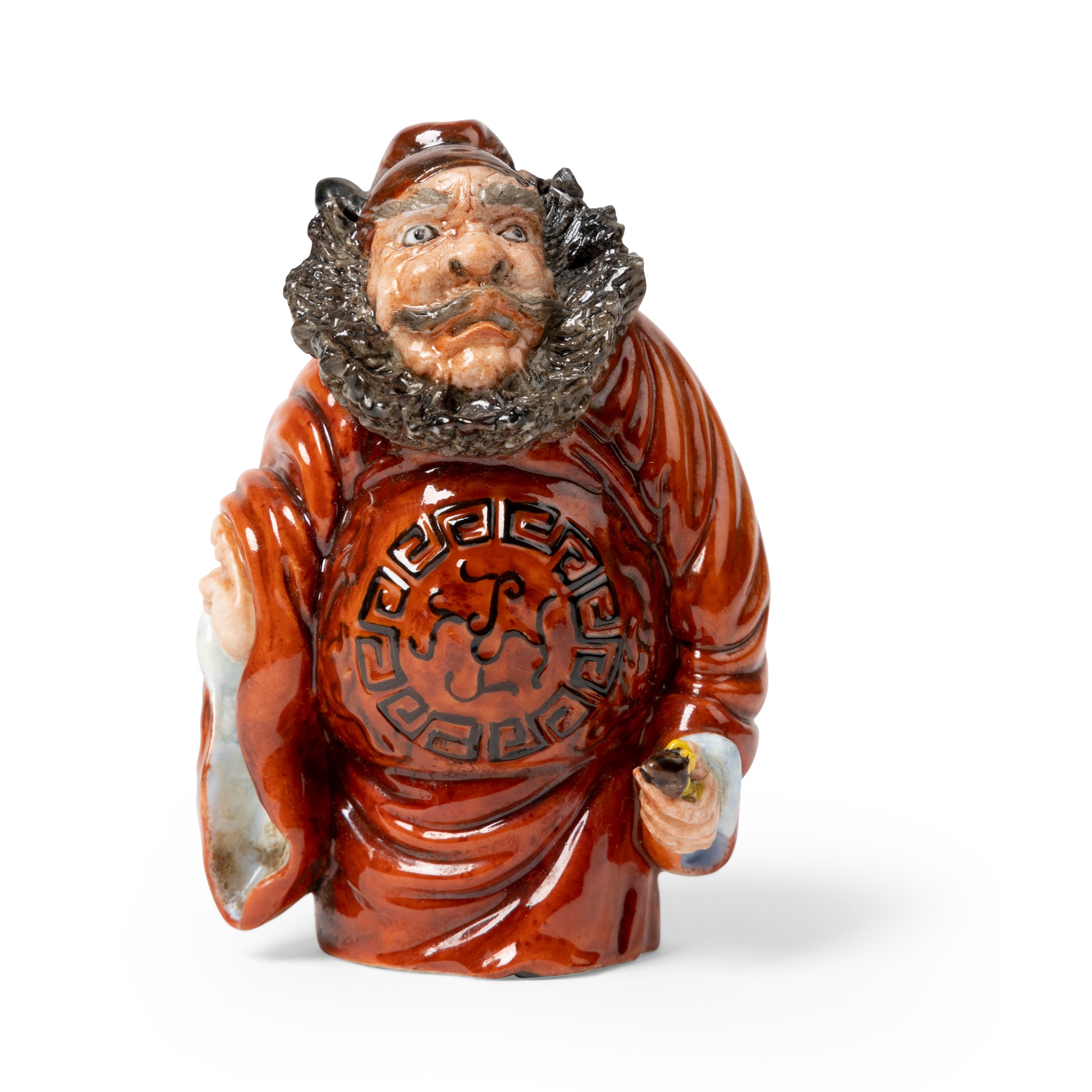 the vanquisher of ghosts moulded wearing an iron-red robe and official's headdress, with spurting beard, the ferocious face looks up