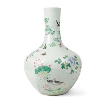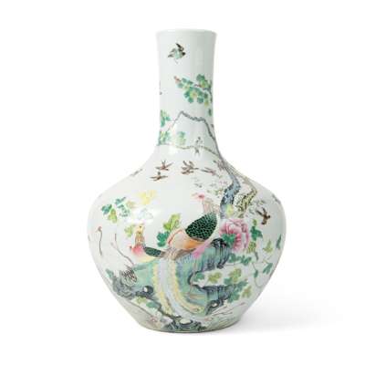 清 乾隆款 粉彩百鳥朝鳳大天球瓶