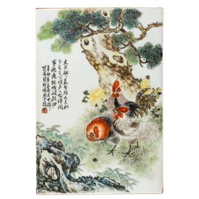 FAMILLE ROSE 'ROOSTER' PORCELAIN PLAQUE