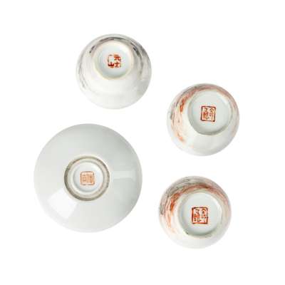 GROUP OF FOUR FAMILLE ROSE PORCELAIN WARES