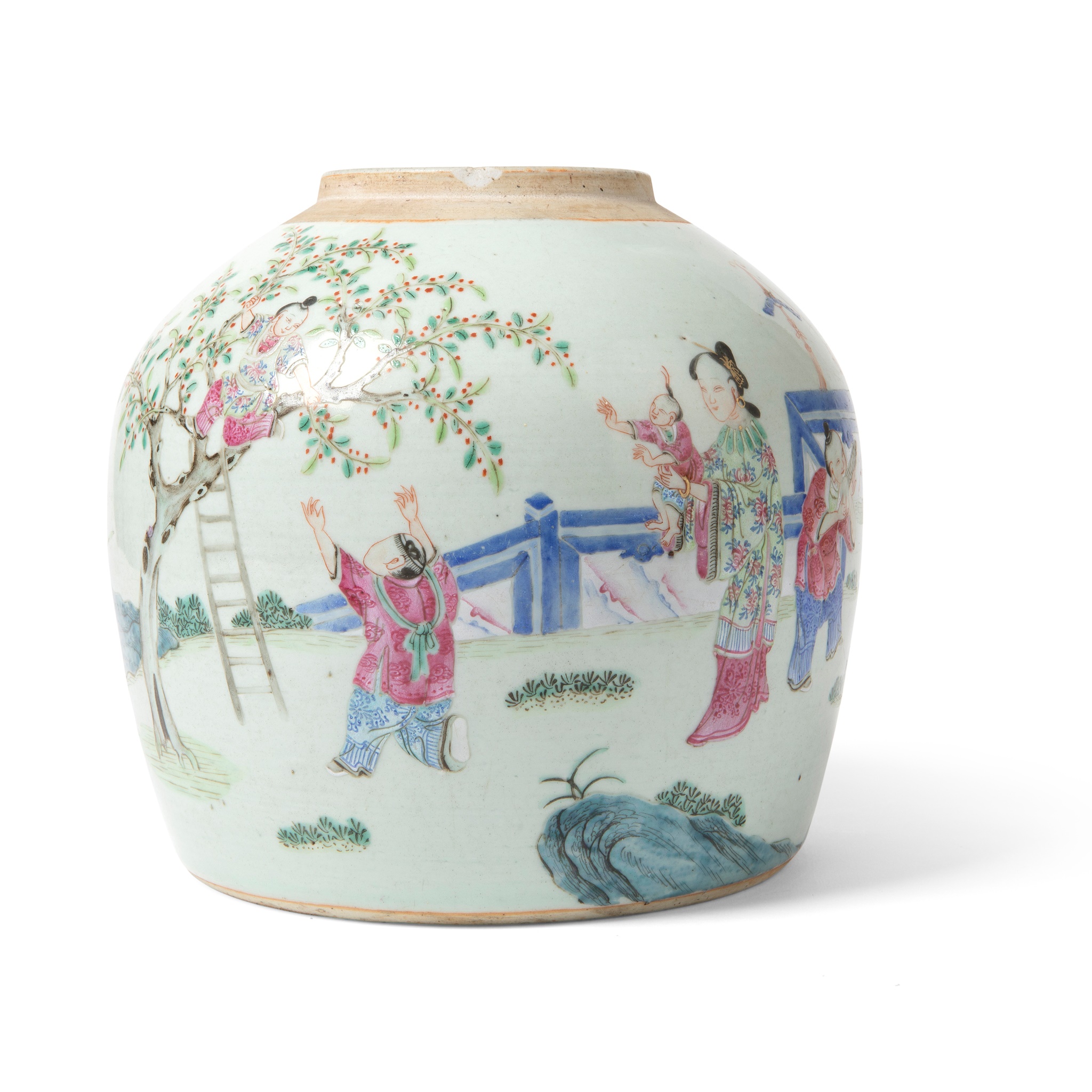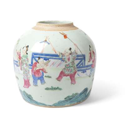 FAMILLE ROSE 'MOTHER AND BOYS AT PLAY' GINGER JAR