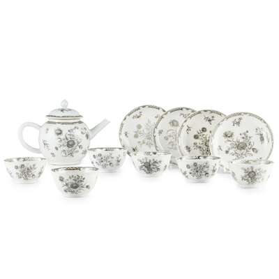 GROUP OF ELEVEN EN-GRISAILLE TEAWARES