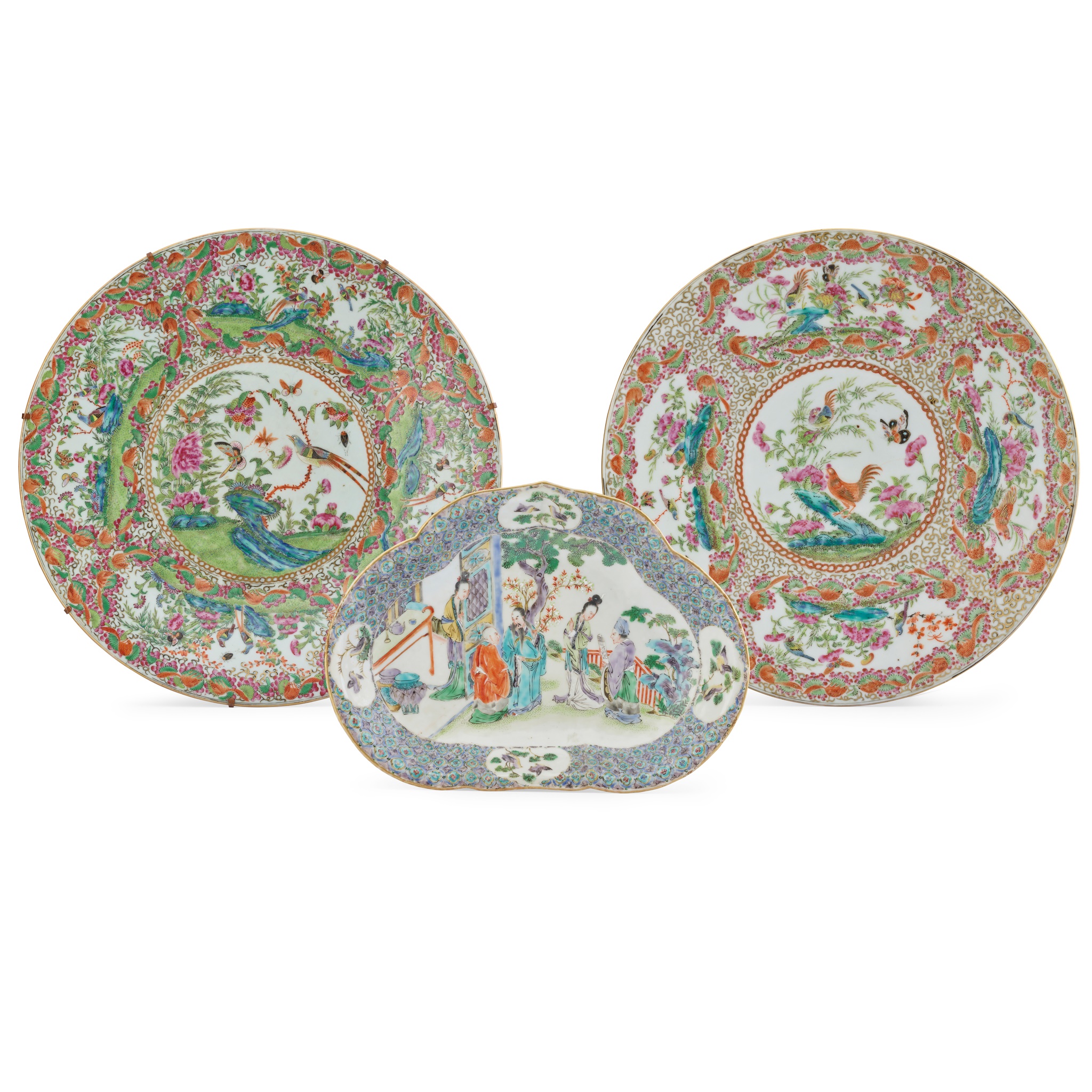 GROUP OF THREE CANTON FAMILLE ROSE WARES
