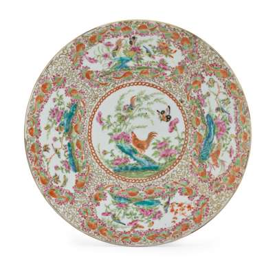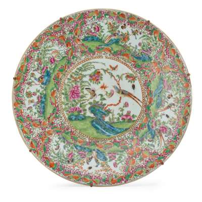 清 廣彩花鳥紋大盤 及 人物故事紋花口碟(共三件)