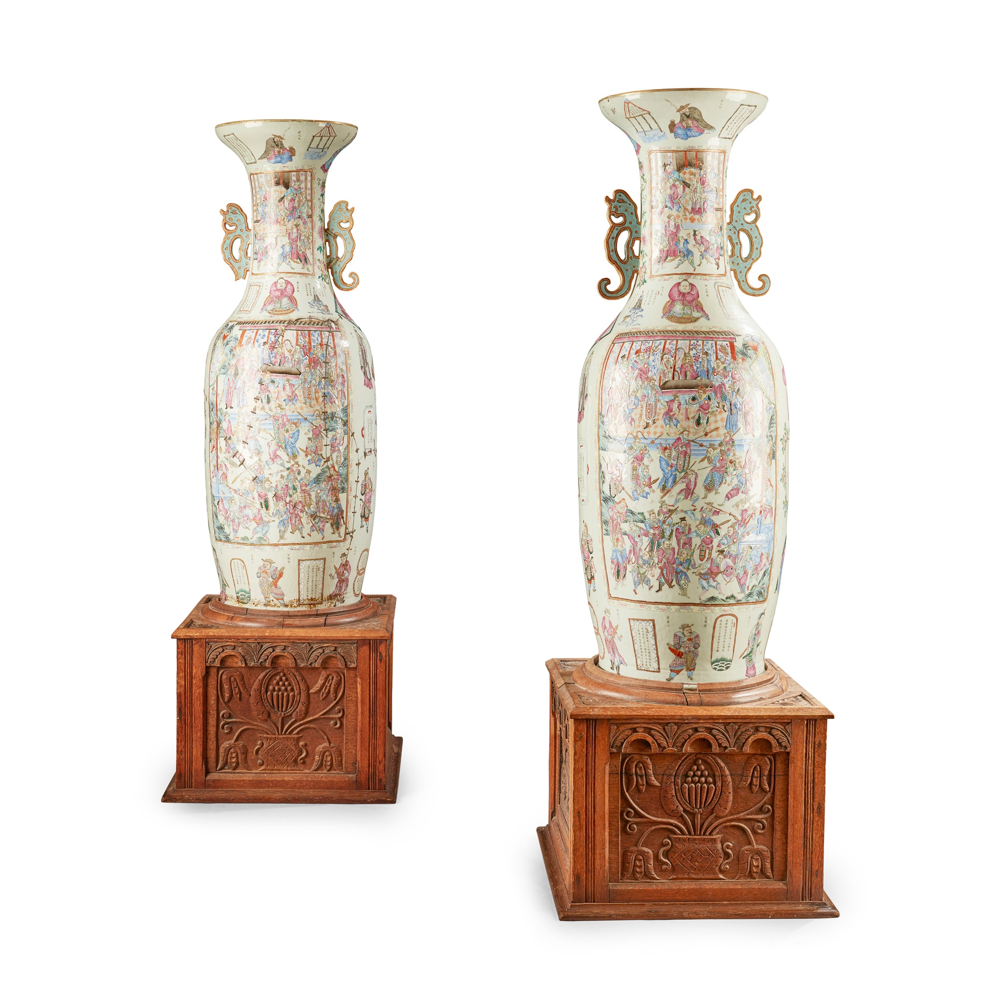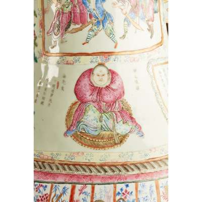清 粉彩無雙譜紋落地大瓶 帶木座(一對)