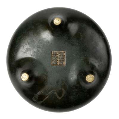 明末清初 '宣德五年製造'底款 銅鑄沖耳三足爐
