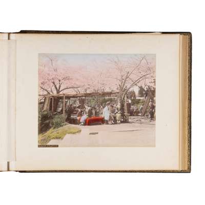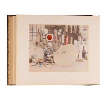 50 hand-tinted album prints, mounted one per page, tissue guards, lacquer binding; Bookplate of the album: Alexander Livingstone Bruce