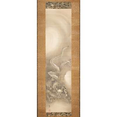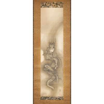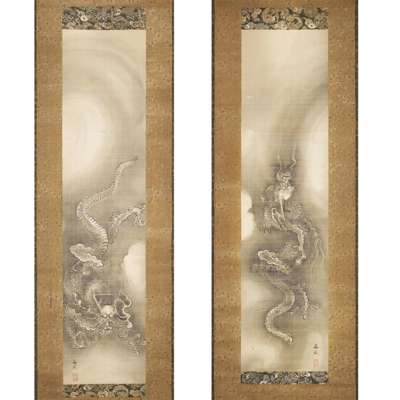 谷文晁款 騰龍圖 水墨絹本 立軸(共兩幅)